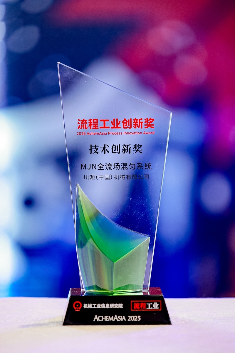 川源(中國)機械有限公司的MJN全流場混勻系統憑借創新性、技術先進性、良好的節能收益以及對行業發展的積極推動作用,榮獲2025流程工業創新獎(2025 AchemAsia Process Innovation Award)。
