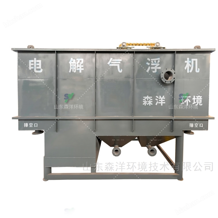 電絮凝氣浮工藝集電解、絮凝和氣浮于一體,以金屬鋁或鐵復合材料做陽極,在電解過程中由陽極上溶解而轉移到溶液中的三價鋁離子或二價鐵離子水解而成為分散雜質的有效絮凝劑,在陽極上產生氧氣泡,在陰極上產生氫氣泡。這些氣泡在上升時,就將懸浮物帶出水面,在水面上形成浮渣層;另一方面,三價鋁離子(或二價鐵離子)及其水解聚合產物與懸浮雜質相互作用而發生絮凝。